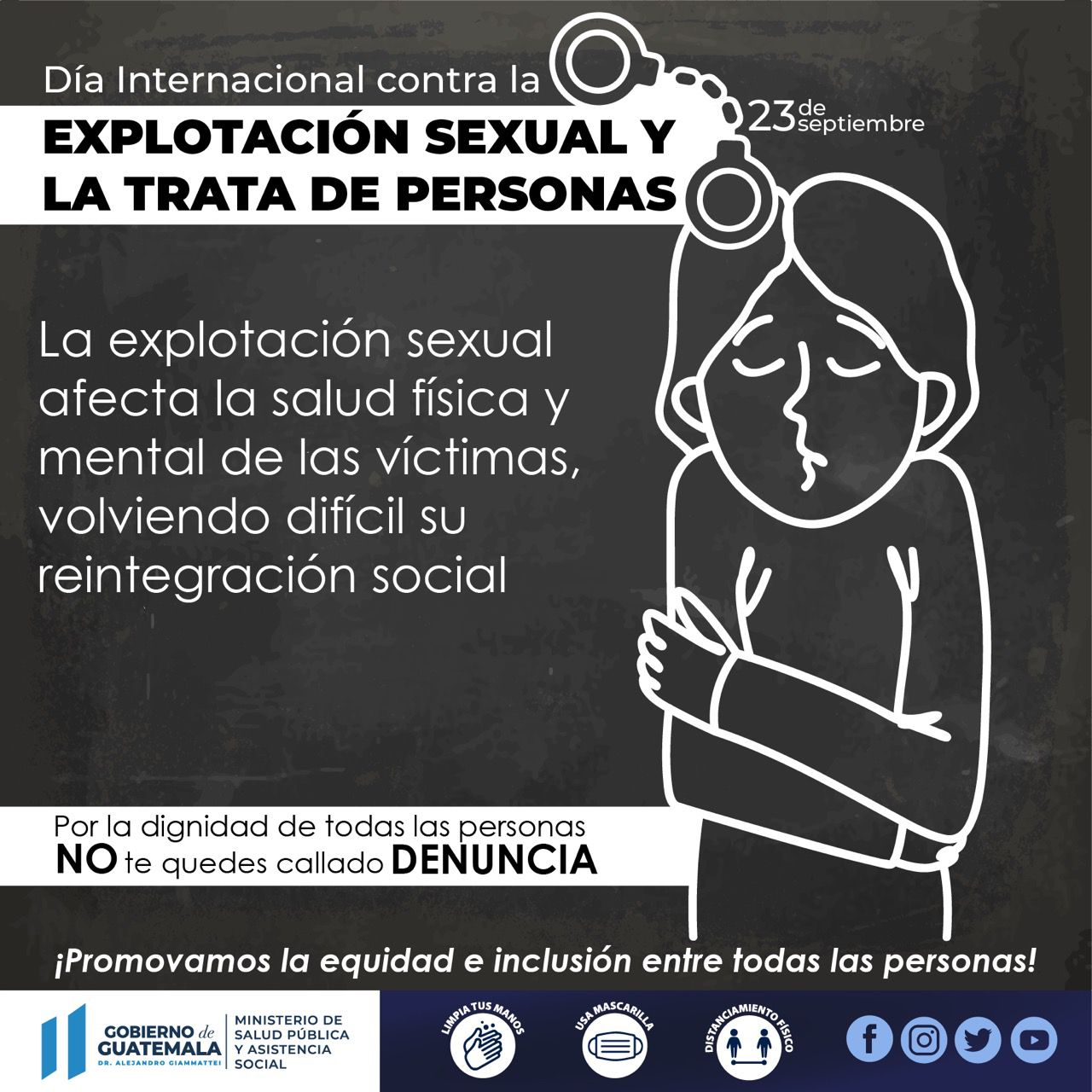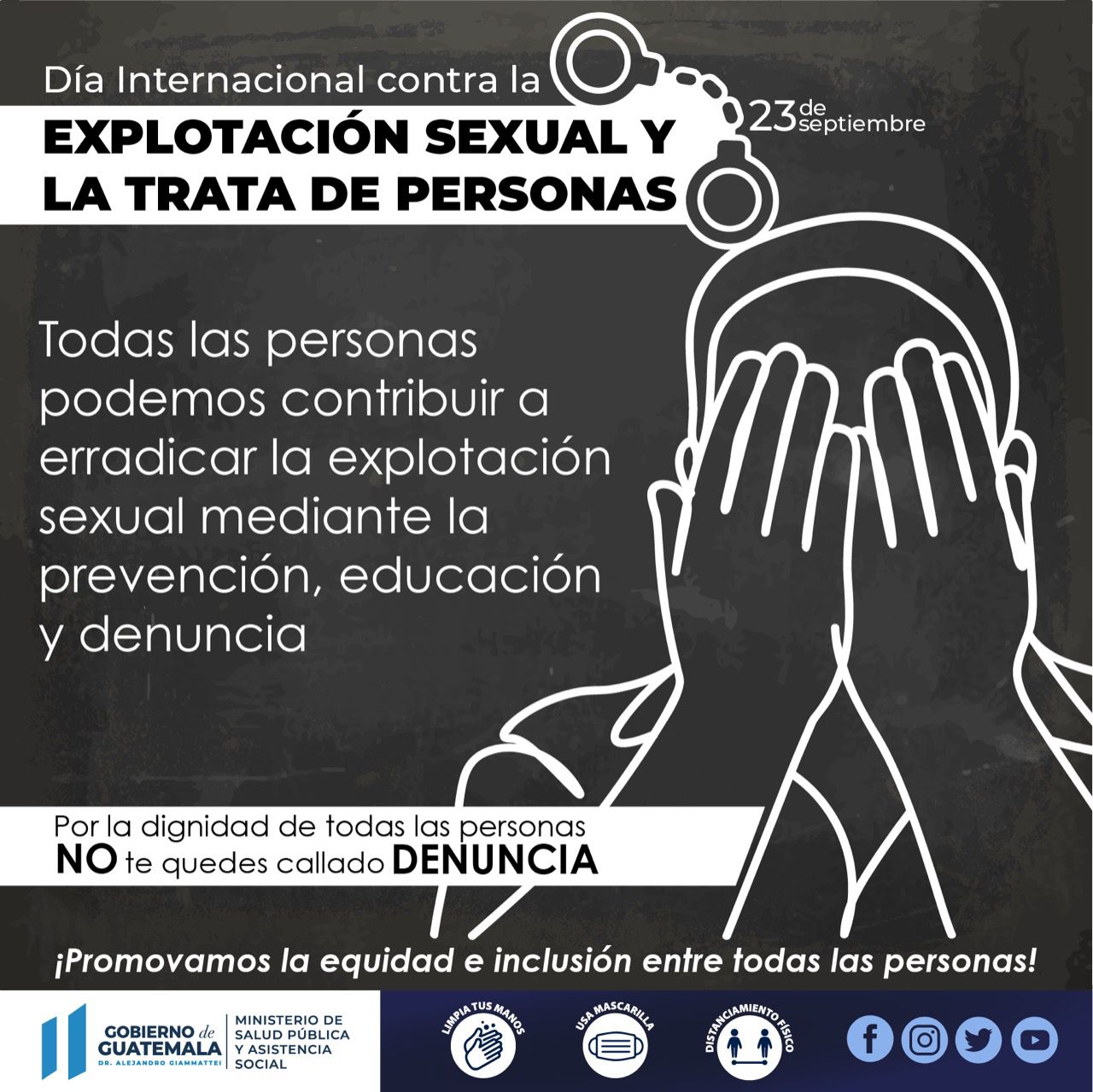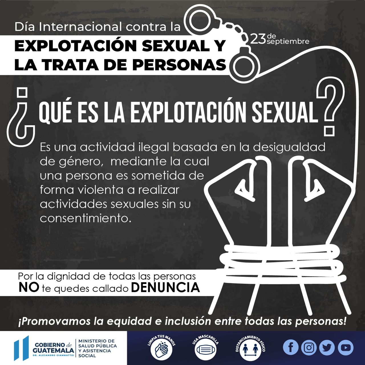 El 23 de septiembre de cada año se conmemora el Día Internacional contra la Explotación Sexual y la Trata de Personas, que tiene como objetivo concientizar a la población sobre la problemática de desigualdad y equidad de género y el impacto que este fenómeno tiene sobre la sociedad, obteniendo muchas veces como resultado actividades sexuales sin el consentimiento de las personas.