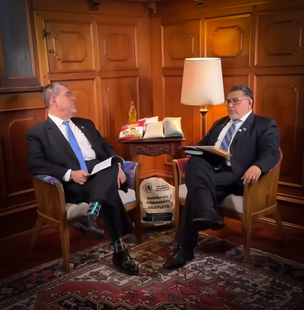 El presidente de la República de Guatemala, Bernardo Arévalo, junto con el ministro de Agricultura, Ganadería y Alimentación (MAGA), Mynor Estrada, dialogaron acerca las acciones que esta cartera realiza en beneficio de la población agrícola campesina en todo el país, en el marco de la Política de Seguridad Alimentaria y Nutricional.