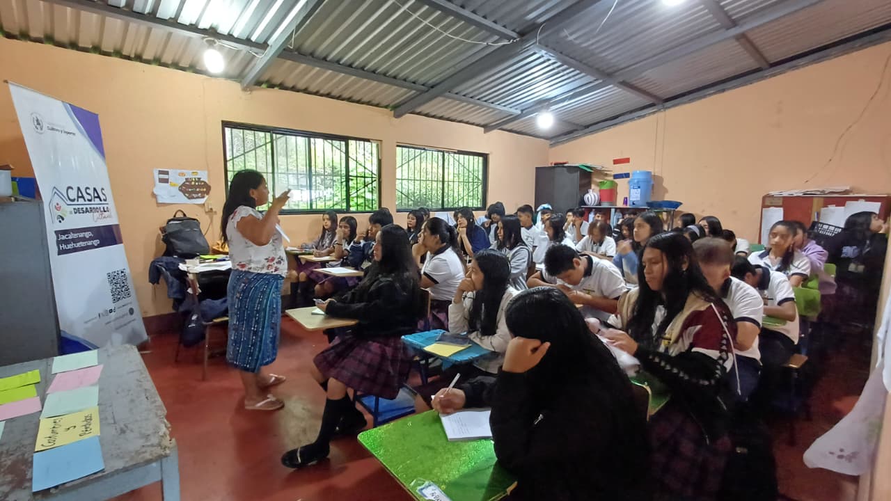 La Dirección General de Desarrollo Cultural llevó a cabo el diálogo “Historia y lucha de los pueblos originarios para el respeto de sus derechos y tradiciones” en la Casa de Desarrollo Cultural de Jacaltenango, Huehuetenango, el 14 de octubre de 2025.