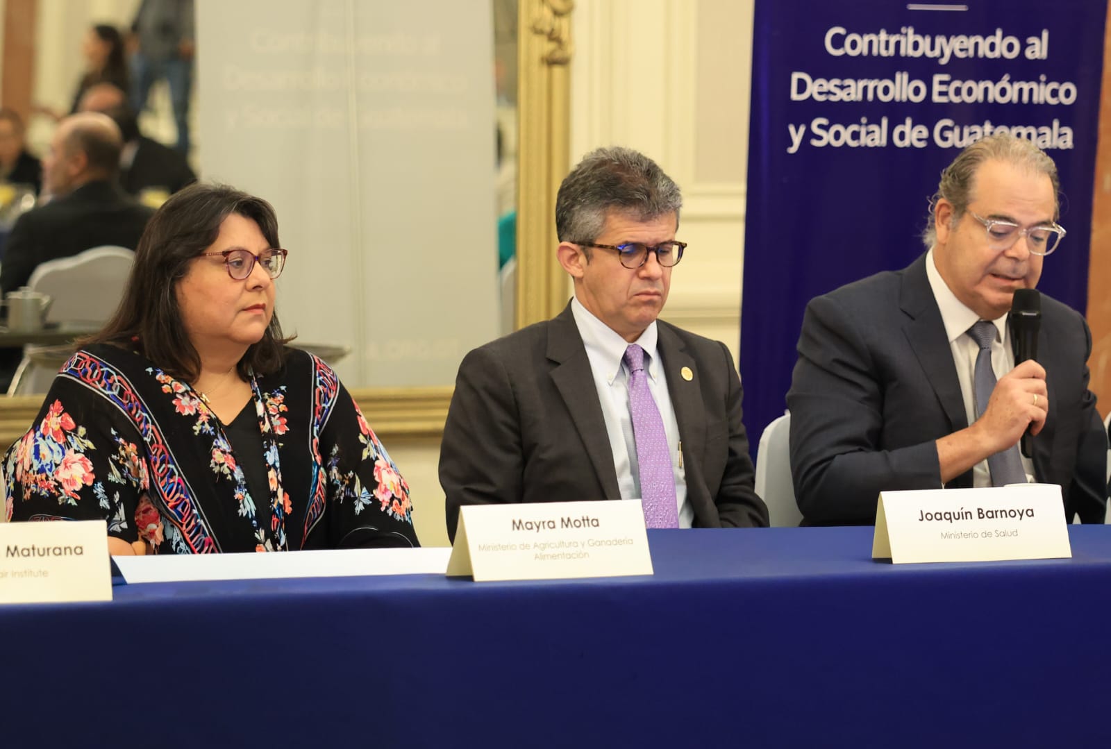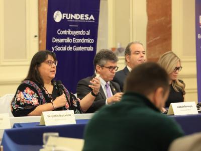 En el conversatorio participaron Joaquín Barnoya, ministro de Salud; Valeria Prado, viceministra de Inversión y Competencia del Ministerio de Economía; Rodrigo Rodas, viceministro de Ambiente del Ministerio de Ambiente y Recursos Naturales, así como José Miguel Torrebiarte, presidente de FUNDESA y Juan Carlos Zapata, director Ejecutivo de FUNDESA.