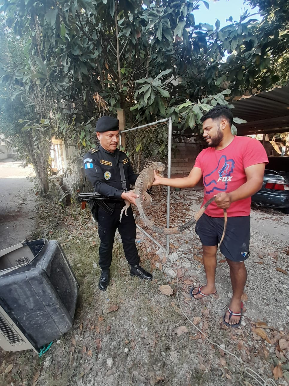 Asimismo, especialistas de Diprona, rescataron en la Aldea Ixlu, en Flores, Petén a una iguana verde macho, quien contaba con un sangrado por posible golpe en la mandíbula maxilar inferior.