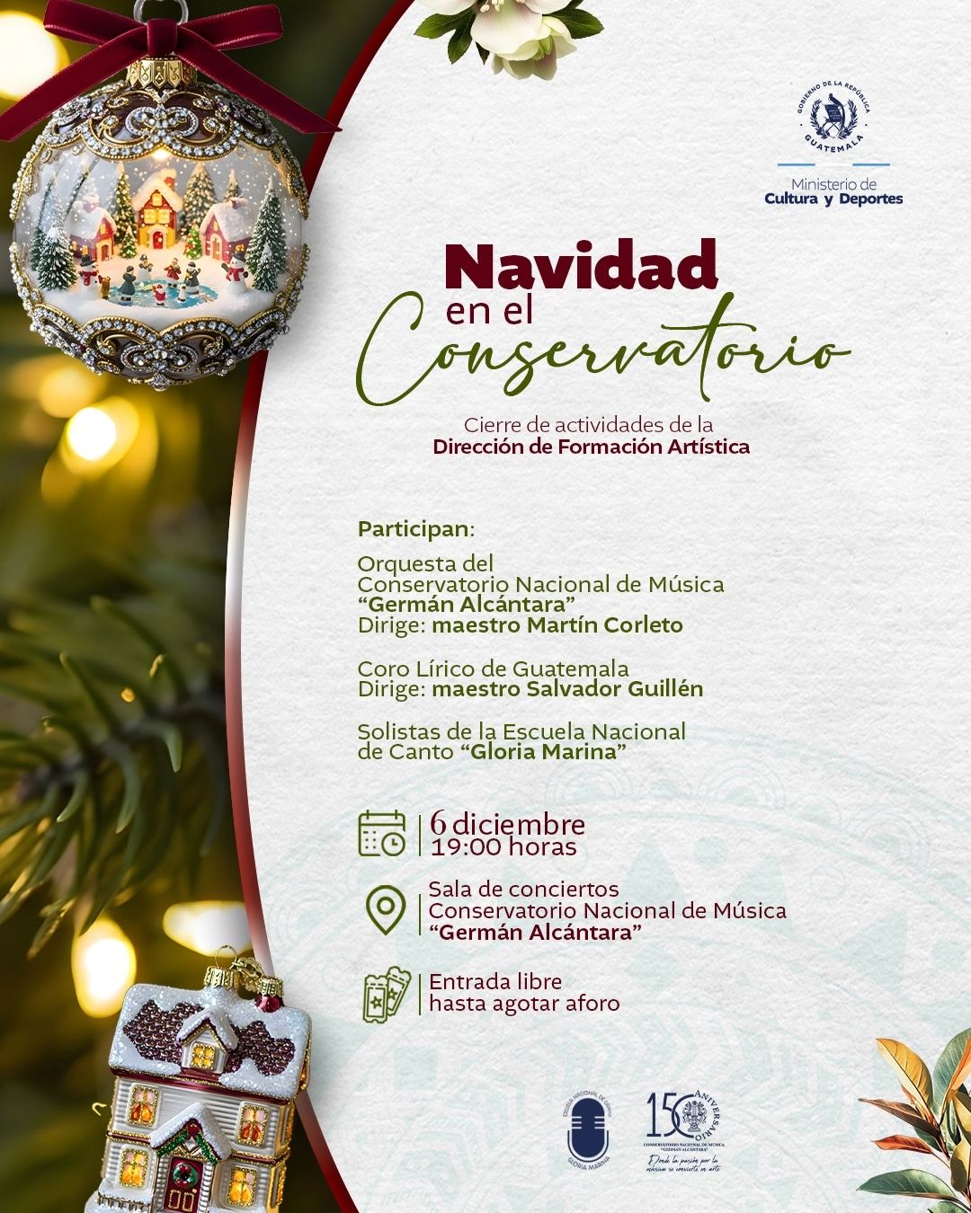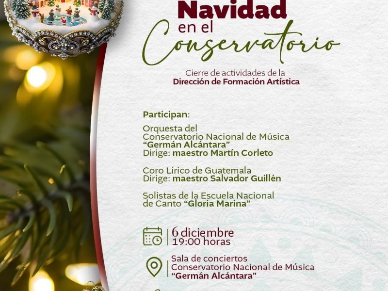 El 6 de diciembre, a las 19:00 horas, la Orquesta del Conservatorio, el Coro Lírico de Guatemala y la Escuela Nacional de Canto unirán sus talentos en una celebración musical abierta al público.