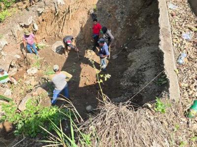 Durante el fin de semana pasado y en el transcurso de esta semana la Zona Vial 3 da seguimiento a la emergencia en el km 98 de la ruta hacia Chiquimulilla, donde se trabaja de forma manual para liberar la tubería colapsada y obstruida por material del talud ocurrido, lo que causó una acumulación de agua que ponía en riesgo el paso y la seguridad de los usuarios de esta ruta. El acceso de maquinaria ha sido imposible, por lo que cuadrillas continúan con el retiro de forma manual del material, con el objetivo de restablecer el sistema de drenaje y prevenir socavamientos.