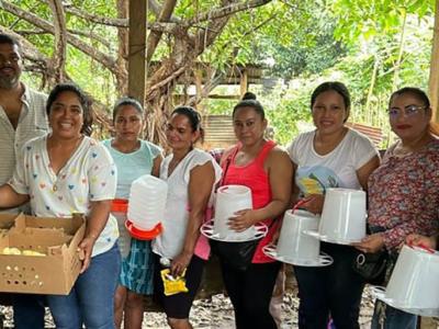 Como parte del apoyo integral, además de los pollos, se entregaron 576 comederos, 576 bebederos y 1152 sacos de concentrado (inicial y finalizador), lo cual fortaleció las capacidades productivas y asegura un manejo adecuado de las aves en cada minigranja.