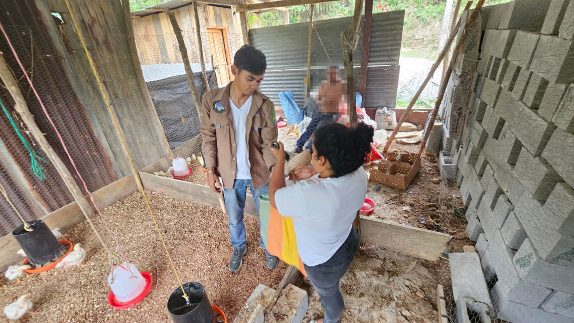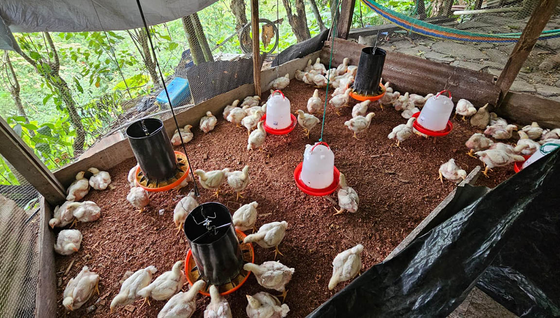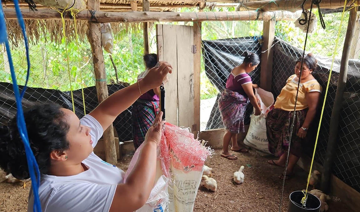 Con el objetivo de impulsar la producción local y mejorar las condiciones nutricionales de las aves, se entregó concentrado en seis granjas de pollos de engorde en el municipio de San Luis, Petén. Estas se encuentran ubicadas en comunidades de la zona de adyacencia y son administradas por grupos de mujeres.