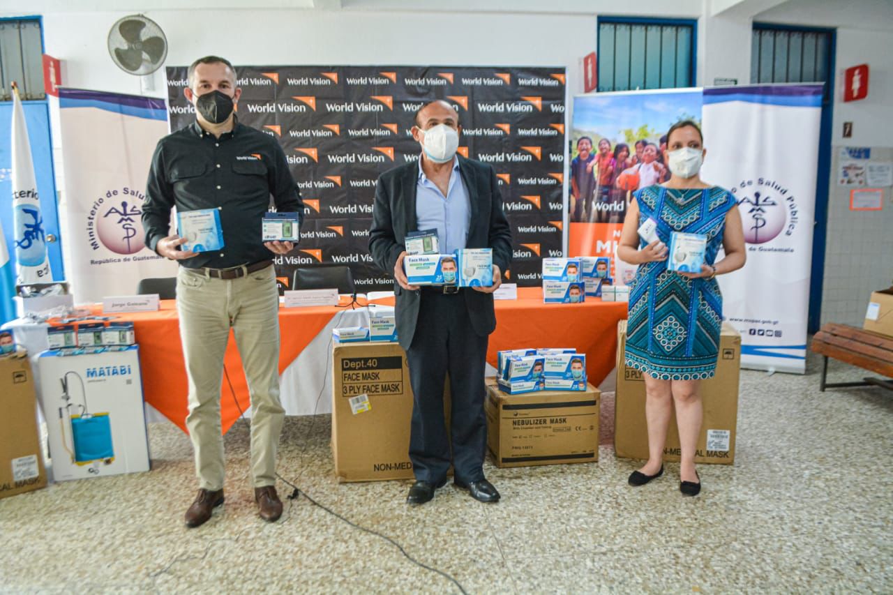 Termómetros infrarrojos, oxímetros pediátricos y de pulso, alcohol en gel, mascarillas KN95 y lentes protectores, son parte del donativo que entregó World Vision al Ministerio de Salud, lo cual será distribuido en los diferentes servicios del Área de Salud Guatemala Noroccidente.