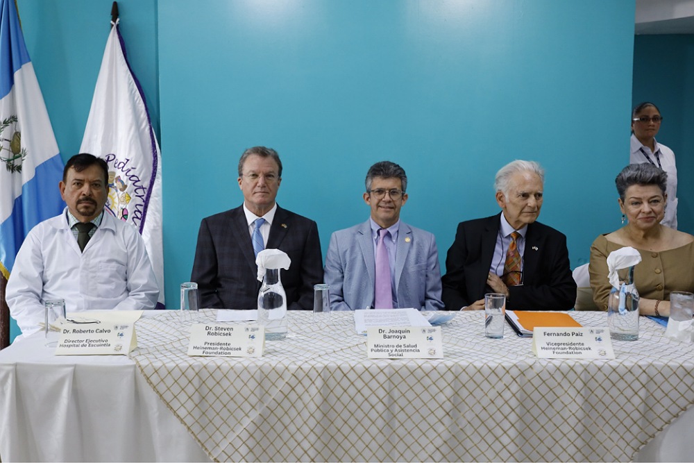Mediante un acto especial encabezado por la primera dama de la nación, doctora Lucrecia Peinado, y el ministro de Salud, doctor Joaquín Barnoya, la fundación Heineman-Robicsek hizo entrega de equipo médico y suministros, lo que viene a beneficiar la asistencia a pacientes y al trabajo invaluable que realiza el personal salubrista de este centro asistencial.