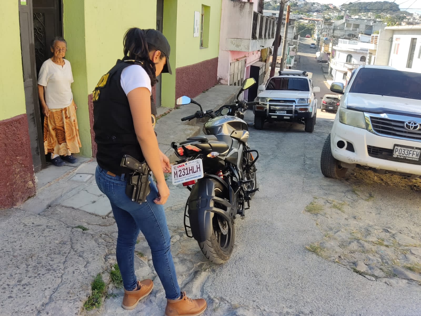 Asimismo, en el interior de la oficina de la Sección contra Robo y Hurto de Vehículos, ubicada en la 15 avenida, 10-86, zona 1 capitalina, se procedió a poner a disposición la motocicleta M-231HLH marca Bajaj, línea Pulsar 200 NS, modelo 2023, color gris con franjas multicolor, la cual contaba con documentos falsos.