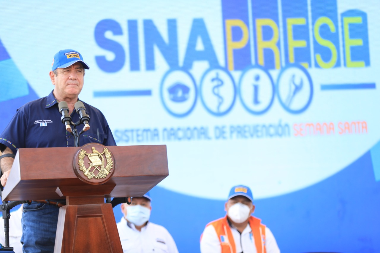 El Presidente Alejandro Giammattei participó en el lanzamiento del Sistema Nacional de Prevención en Semana Santa SINAPRESE en Champerico, Retaluleu, dentro de las actividades desarrolladas este día en su gira presidencial.