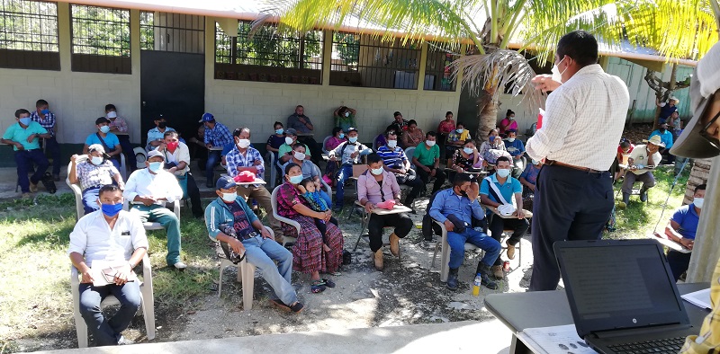 Miembros de la Empresa Campesina Asociativa E.C.A. Aj Awinel, realizaron Asamblea Comunitaria Extraordinaria la subcoordinación del programa Desarrollo de Comunidades Agrarias Sostenibles de la Oficina Regional Petén, realizó análisis de la organización y los procedimientos legales que se deben realizar para actualizar a los miembros de la E.C.A., para continuar con las gestiones ante el Programa Acceso a la Tierra Vía Crédito y Subsidio del Fondo de Tierras.
