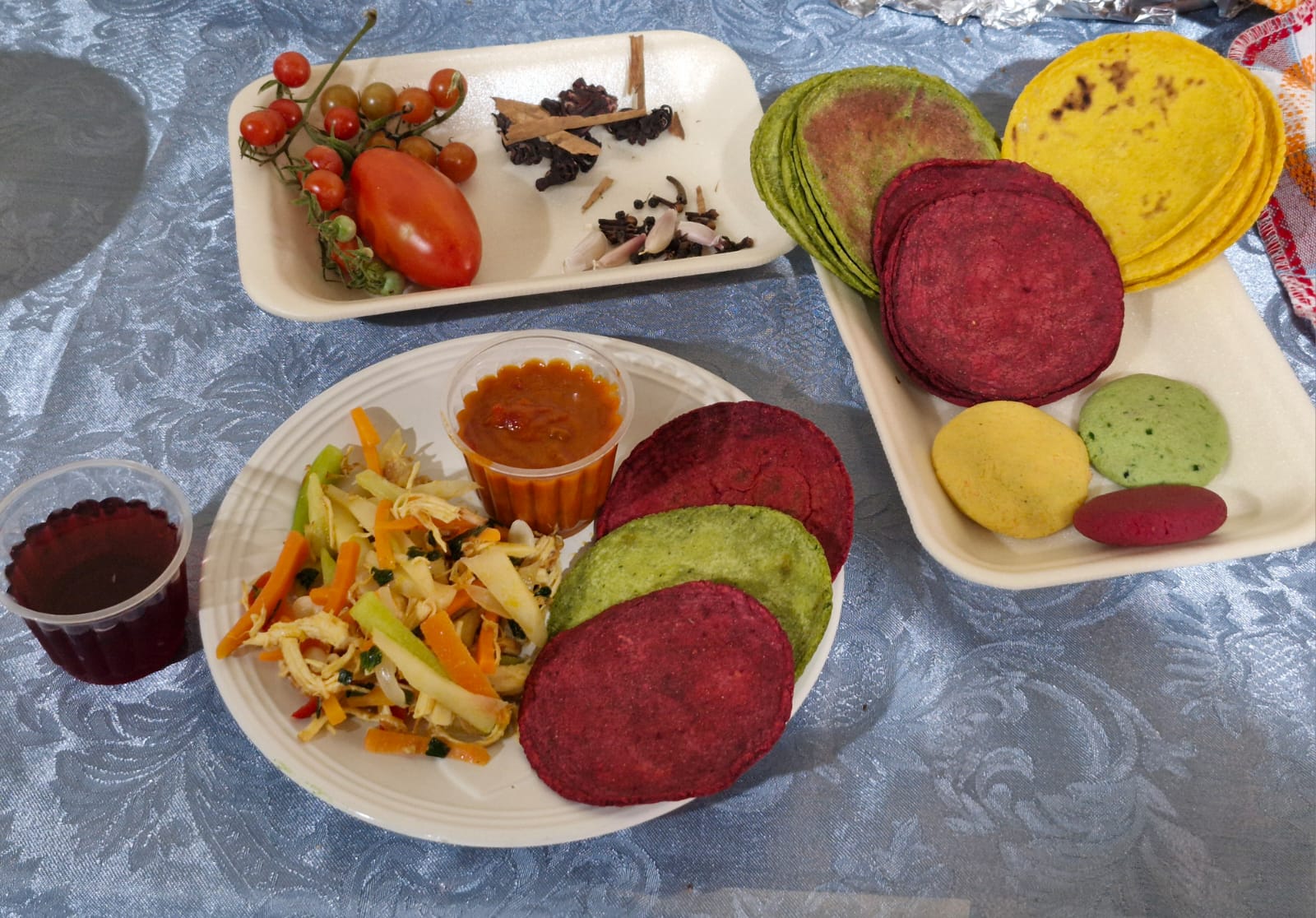 La propuesta presentada durante la reunión de trabajo fue el menú número cuatro denominado “Refresco de jamaica y tortillas coloridas con pollo y vegetales”, opción que se basa en una dieta balanceada con elementos como: maíz, vegetales, proteína de origen animal como la del pollo y vegetal como el aceite y azúcar.