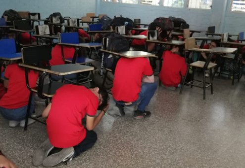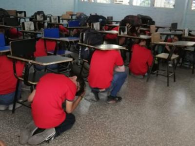 Con el propósito de capacitar a los estudiantes para reducir los riesgos ante algún fenómeno natural como un sismo o terremoto, se efectúo el simulacro de evacuación en los centros educativos del departamento de Chiquimula.