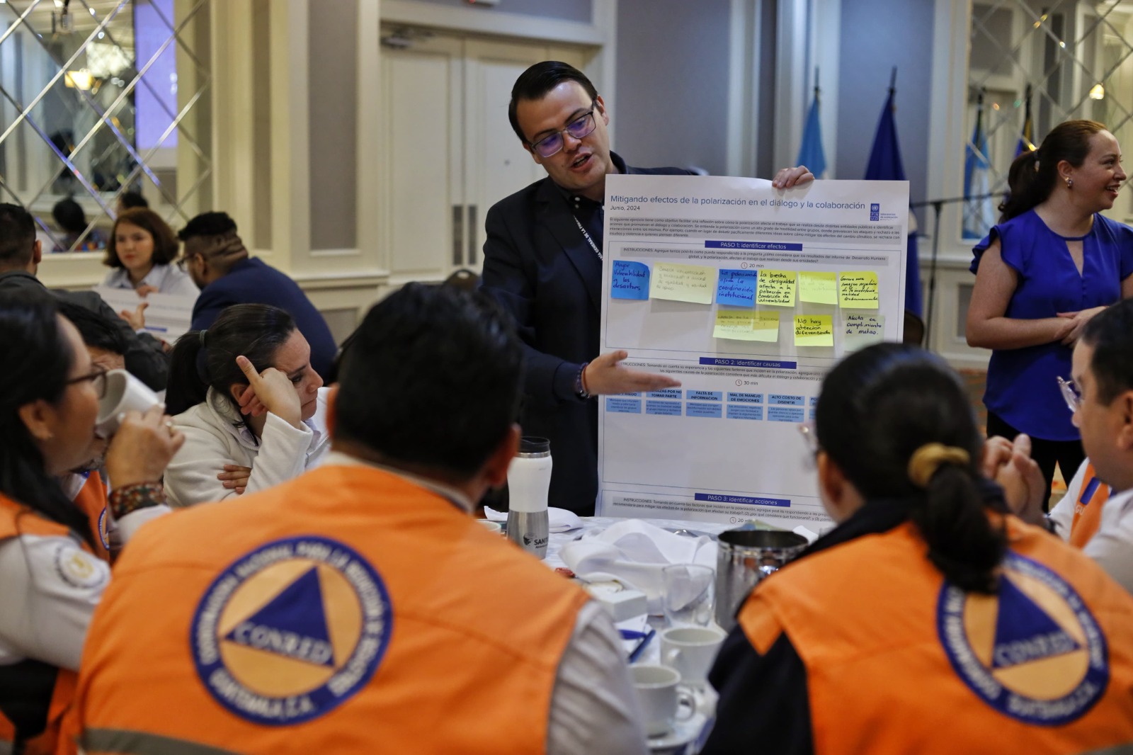Además de la participación e interacción de representantes de la Secretaría de Comunicación de la Presidencia, la Coordinadora Nacional para la Reducción de Desastres -CONRED-, los ministerios de Salud Pública y Asistencia Social -MSPAS-, Desarrollo Social -MIDES-, Educación -MINEDUC-, el Instituto Nacional de Bosques -INAB-, el Instituto de la Víctima. Así como de los consejos Nacional de Adopciones, de Áreas Protegidas -CONAP- y de Atención de las Personas con Discapacidad -CONADI-, entre otros.