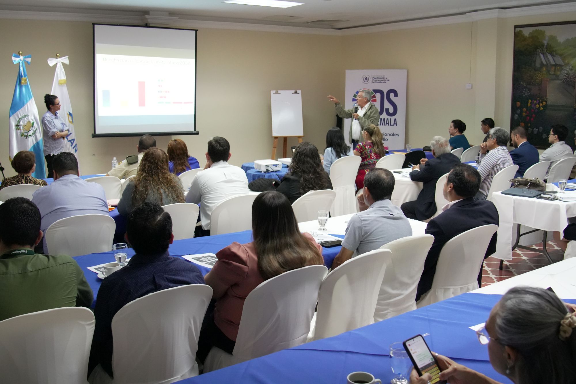 Guatemala, 8 de mayo de 2025. Instituciones que representan diversos sectores del país participan en talleres para validar los datos que serán presentados en el V Informe de la Revisión Nacional Voluntaria (RNV) que se presentará este año en el Foro Político de Alto Nivel, en la sede de la Organización de las Naciones Unidas.