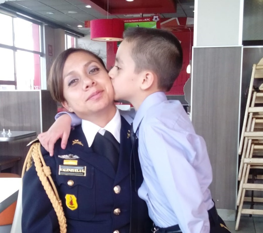 Para las madres militares es muy importante crear una red de apoyo, donde generalmente, la familia es el pilar que les permite crecer profesionalmente y atender paralelamente la tarea tan importante de ser madre de familia: “Una de las experiencias o reto para mí fue dejar a mi hijo cuando participé en un contingente, en una misión de paz en la República de Haití, él tenía apenas cinco años, fue difícil para mí tener que dejarlo, pues como madre uno no quiere dejarlos, sin embargo, la oportunidad que se daba en ese momento era tanto para él como hijo, pues me permitiría darle mejores oportunidades y para mí representaba crecimiento profesionalmente hablando. Este fue uno de los retos que enfrente, hacerle ver a un pequeño que su madre tiene que dejarlo y no es porque no lo quiera, sino que en ese momento uno ve las situaciones del trabajo. Tuve bastante apoyo de mi mamá, ya que ella fue quien se quedó con mi hijo, también mi hermana, que no me sustituyeron como madre, pero si me dieron todo el soporte que en ese momento necesitaba. Mi hijo me entendió a pesar de ser pequeño, yo estuve con él de una manera virtual o comunicándome telefónicamente todos los días, a pesar de la distancia estuve presente con él a diario”.