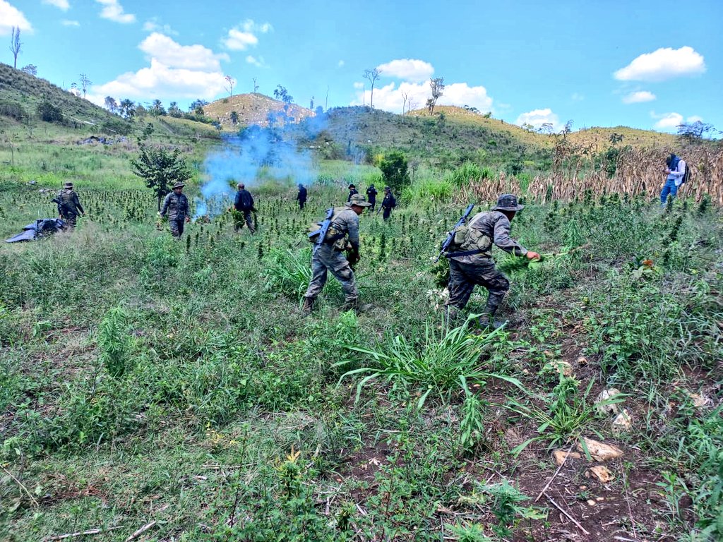 En este sentido, a la fecha el Cuerpo de Ingenieros del Ejército inhabilitó 4 pistas clandestinas; a la vez que unidades militares han incautando 932 paquetes de cocaína; asimismo, en el departamento de Petén se eliminaron dos narcolaboratorios y se han erradicado varias plantaciones de ilícitos, entre las que se encuentran las efectuadas en el municipio de Melchor de Mencos, donde se erradicó 272 mil 327 matas de marihuana valoradas en alrededor de Q102 millones de Quetzales; asimismo en esta localidad se incautaron 50 libras de semillas de este ilícito; 125 libras procesadas, así como 250 ramas en proceso de secado. En el mismo departamento, se erradicó 3 mil 600 arbustos de coca ubicados en Sayaxché y otros 100 arbustos fueron eliminados en el municipio de San Luís.