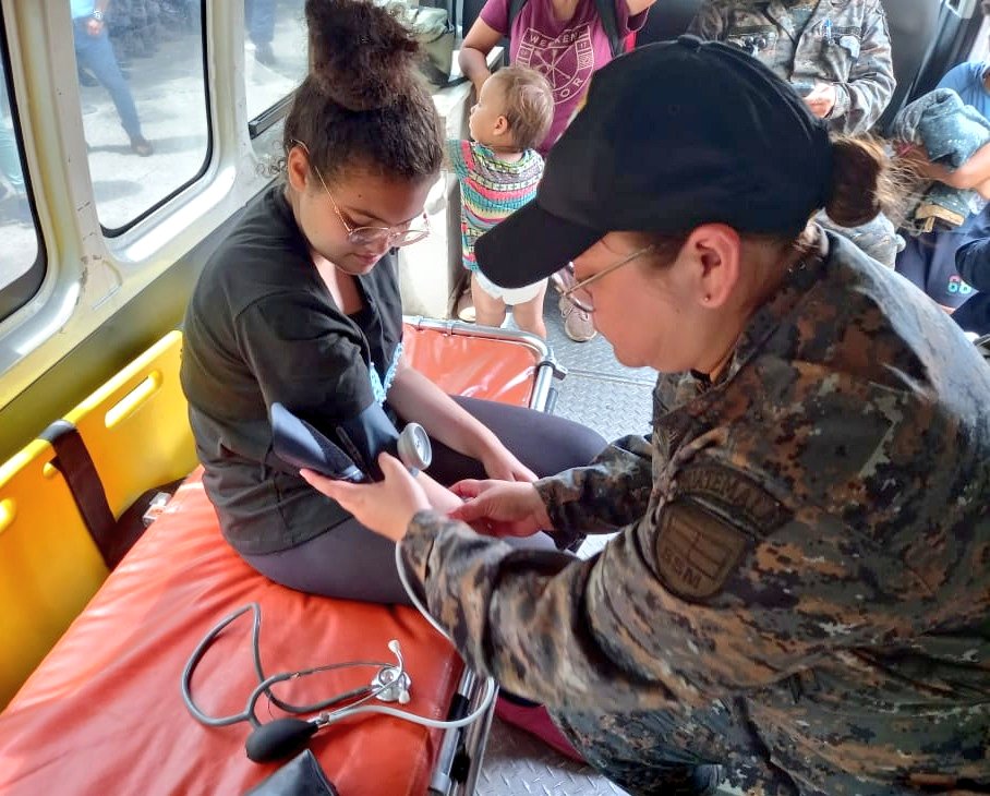 El Ejército de Guatemala, en conjunto con la Policía Nacional Civil apoyan al Instituto Guatemalteco de Migración (IGM) en distintos controles en puestos fronterizos para prevenir la migración irregular; además de realizar acciones de auxilio humanitario a personas migrantes que sufren diferentes afecciones en su tránsito en la república guatemalteca.