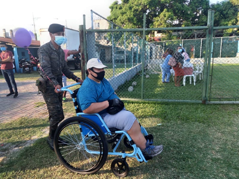 Ejército de Guatemala apoya en la entrega de sillas de ruedas y víveres en Escuintla