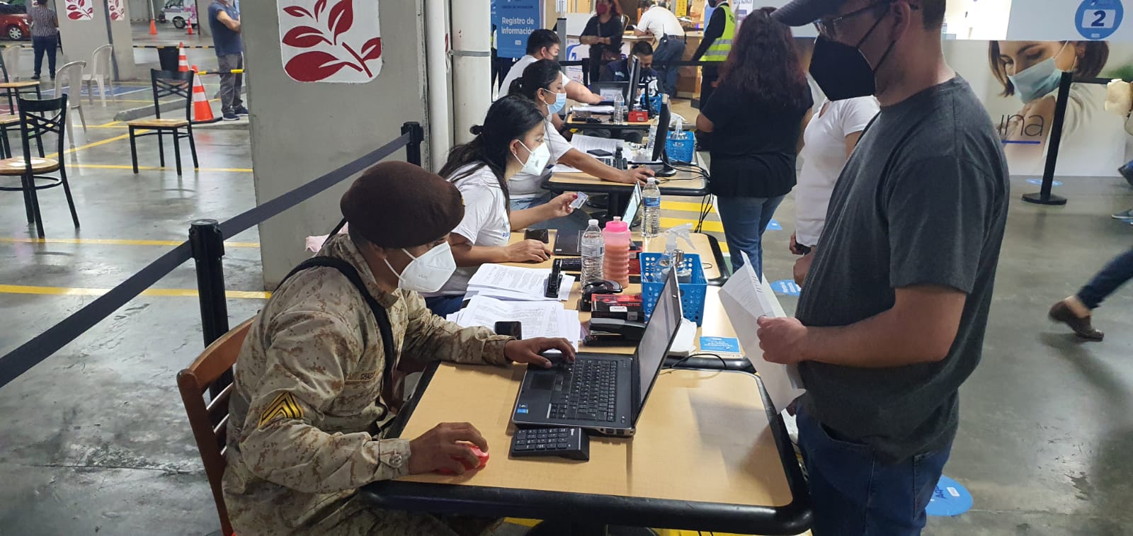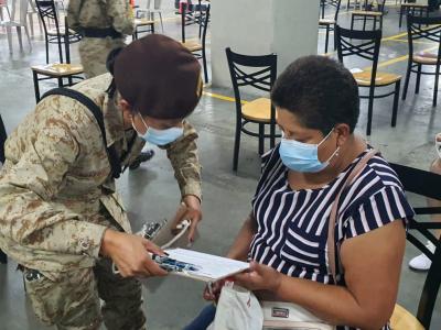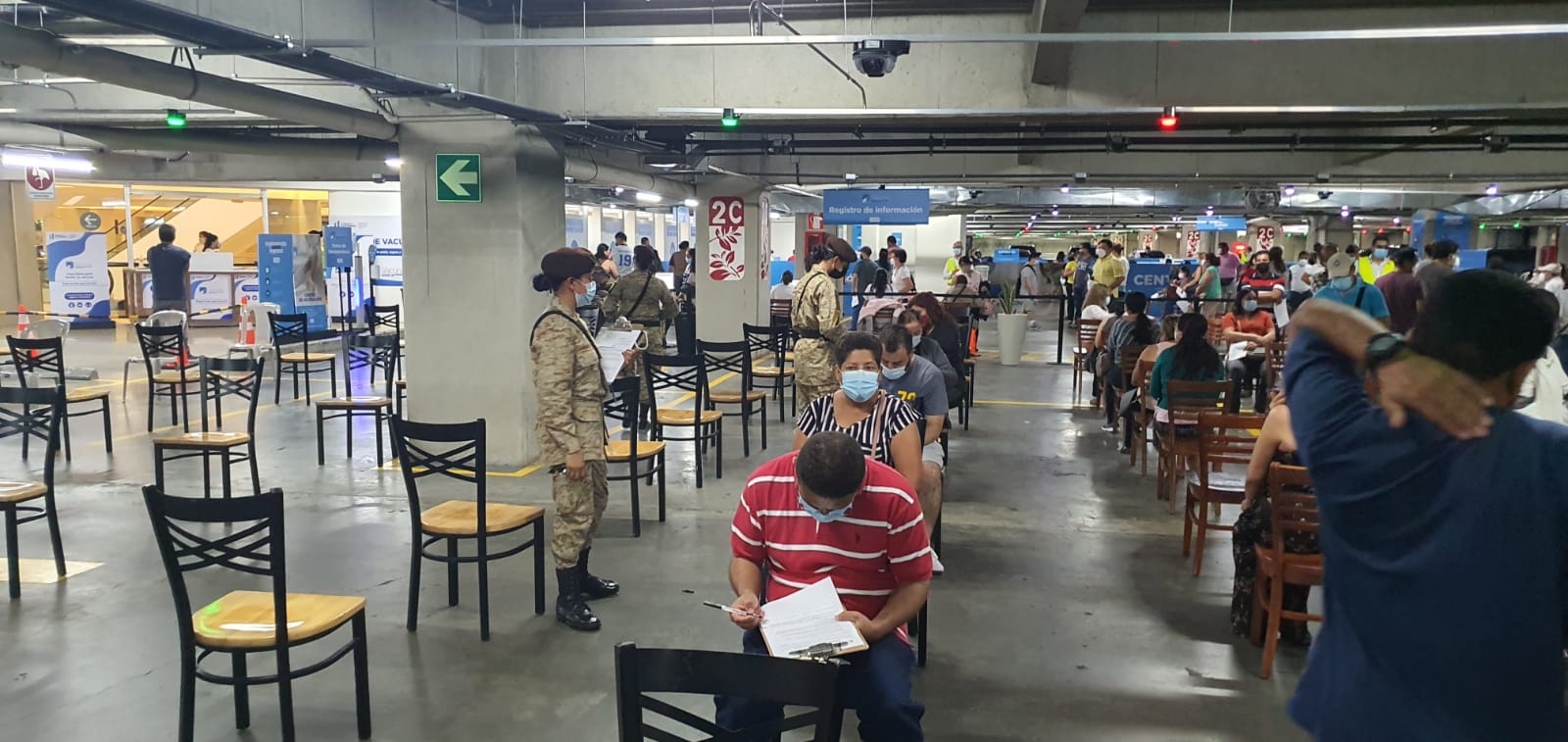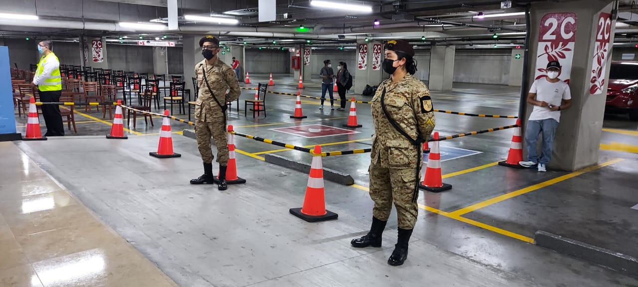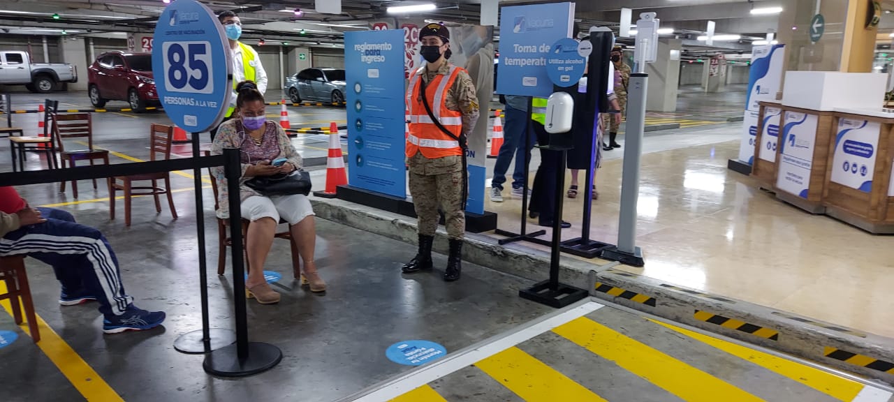 Este puesto de vacunación funciona en uno de los sótanos de este centro comercial, como parte de los esfuerzos gubernamentales y de la iniciativa privada para acercar la vacunación a más personas; en dicho puesto, enfermeros del Servicio de Sanidad Militar apoyan la inmunización, mientras que los Reservistas Militares apoyan con la organización del proceso, informando y asistiendo a los vecinos que acuden a aplicarse el medicamento para prevenir esta enfermedad, como parte del Plan Nacional de Vacunación que las autoridades de salud desarrollan a nivel nacional.
