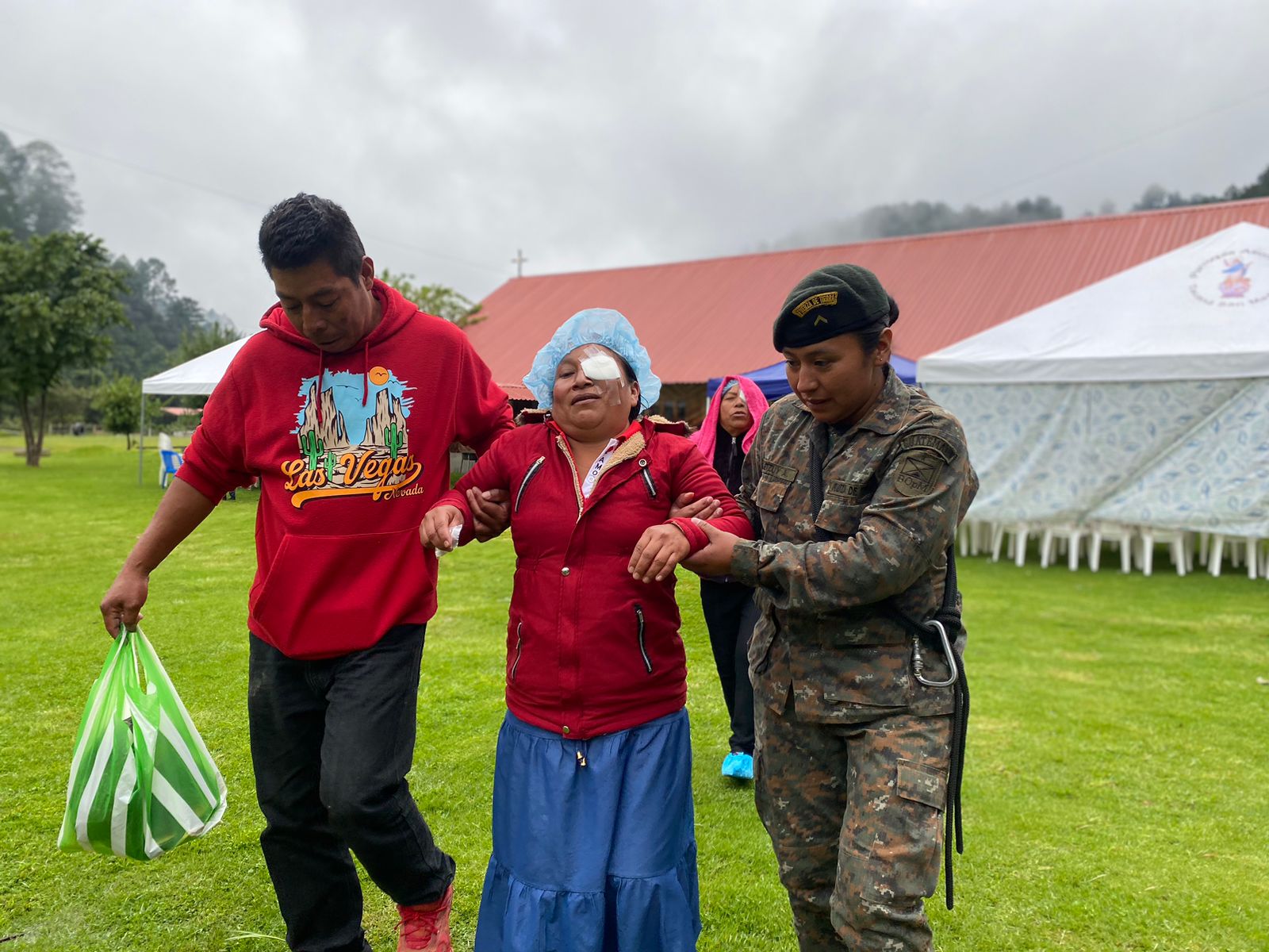 Durante el primer día de la jornada, los expertos en salud visual realizaron evaluaciones a niños, adolescentes y adultos, brindando atención a 67 pacientes quienes pudieron acceder a los servicios de optometría y 38 más que pudieron mejorar su visión a través de los procedimientos de cirugía refractiva, cataratas y pterigión, beneficiando a un total de 105 guatemaltecos. Por su parte, los soldados contribuyeron brindando seguridad perimétrica durante el desarrollo de esta jornada médica; asimismo, apoyaron el traslado hacia el área de atención médica a los pacientes con dificultades motoras.
