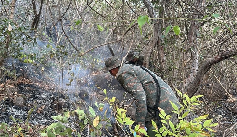 Ejército de Guatemala apoya la supresión de incendio forestal registrado en Jutiapa.