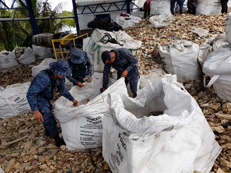 El Ejército de Guatemala, a través de soldados de la Brigada de Infantería de Marina, apoyó este lunes 4 de octubre, al Ministerio de Ambiente y Recursos Naturales (MARN) en la limpieza de desechos sólidos que se acumulan en la desembocadura del río Motagua, a la altura de la aldea Quetzalito, municipio de Puerto Barrios, Izabal.