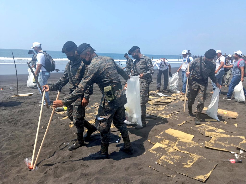 El Ejército de Guatemala, a través de la Brigada de Paracaidistas "General Felipe Cruz", apoyó este lunes 18 de abril, la limpieza de la playa pública del Puerto de San José, Escuintla, labor que fue realizada en conjunto con personal del Ministerio de Medio Ambiente y Recursos Naturales (MARN) y la Municipalidad de este municipio, con el objetivo de contribuir al cuidado del ambiente y preservar el ornato de este atractivo turístico luego del asueto de la semana mayor.