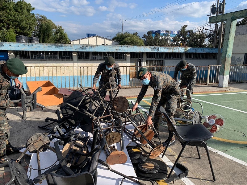 Ejército de Guatemala apoya retiro de bienes inservibles en establecimientos educativos públicos del país