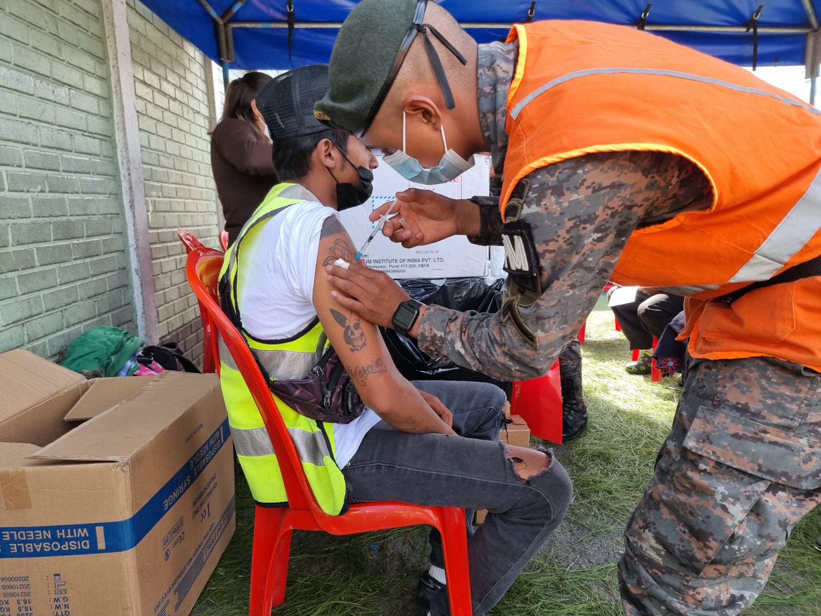 Ejército de Guatemala apoya vacunación de vendedores del mercado La Terminal de la zona 4, capitalina