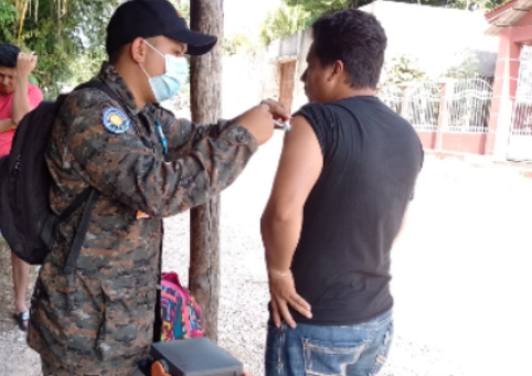 Como parte de las acciones del Plan Nacional de Vacunación que implementan las autoridades sanitarias, este jueves 4 de noviembre, continuó el desarrollo de las jornadas de vacunación móvil de puerta en puerta, realizando un recorrido en el barrio La Paz del municipio de San Benito, Petén, con el apoyo de soldados de la Primera Brigada de Infantería "General Luis García León".