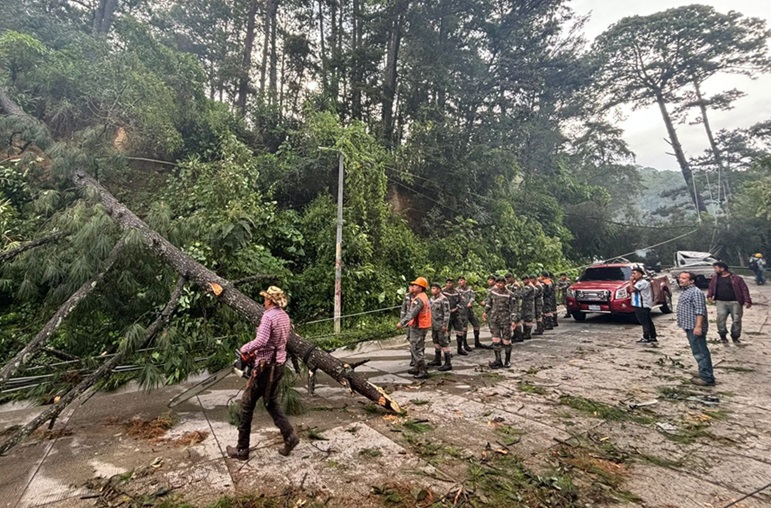 Ejército de Guatemala apoyó descobramiento de árbol que obstaculizaba la carretera que conduce al municipio de San Juan Sacatepéquez.