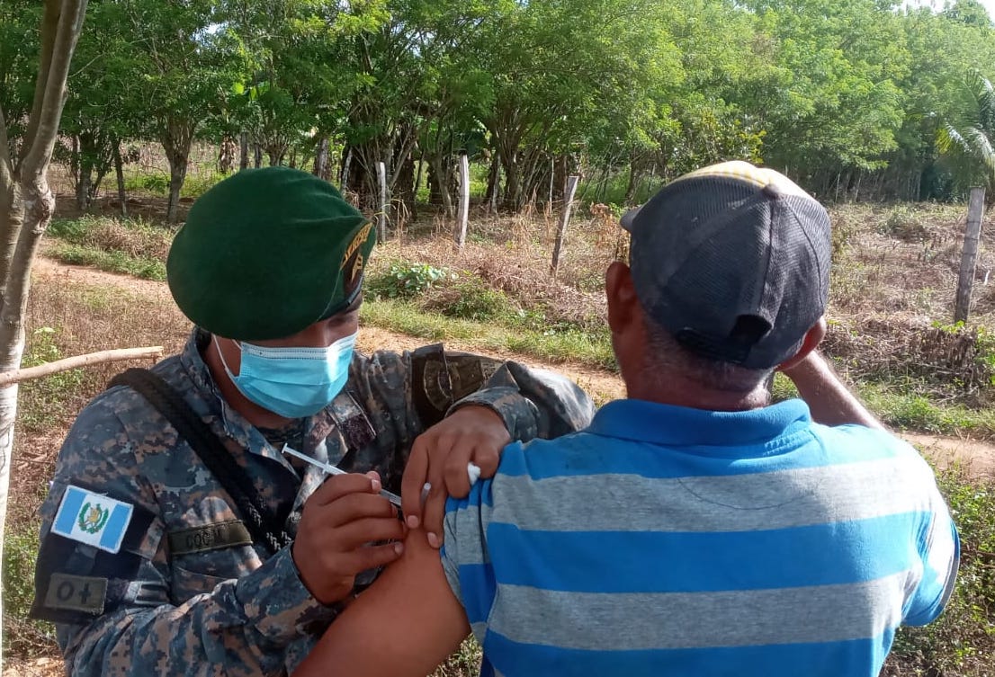 Ejército de Guatemala apoyó en vacunación de puerta en puerta en los departamentos de Quetzaltenango y Petén