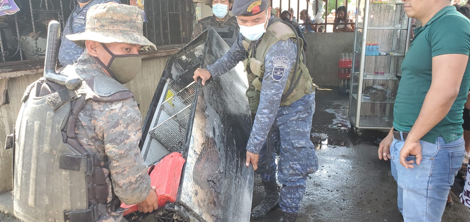 En el marco del Estado de Sitio decretado en el municipio de El Estor, Izabal, Infantes de Marina ayudaron este 4 de noviembre a los propietarios de una vivienda que se encontraba en llamas, en el barrio “27 de Abril” en el municipio de El Estor.
