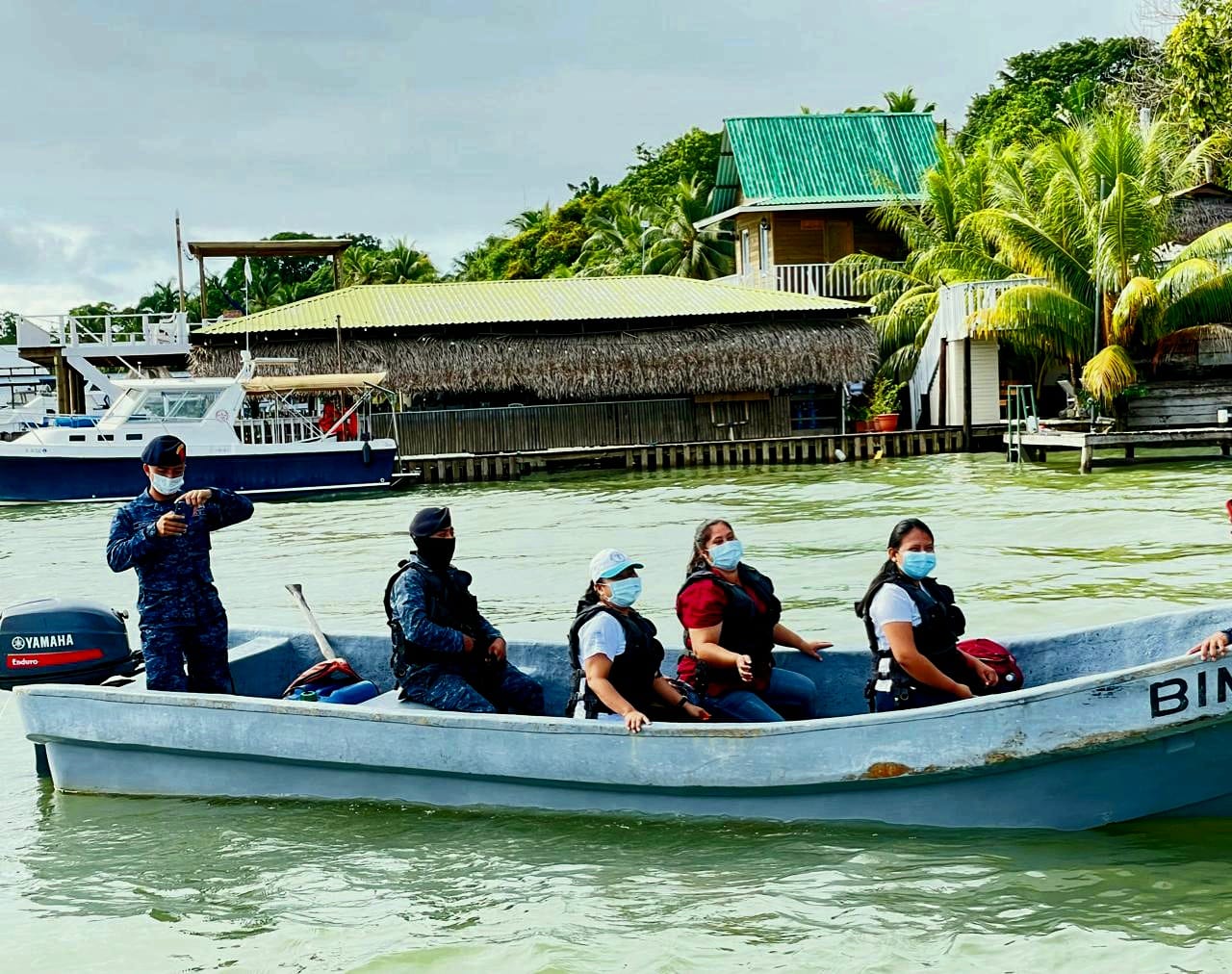 El Ejército de Guatemala, a través de la Brigada de Infantería de Marina, apoya al Ministerio de Salud Pública y Asistencia Social (MSPAS), en el traslado por vía fluvial y marítima de vacunas contra el Coronavirus, COVID-19, hacia las aldeas Camelias, La Bacadilla y Punta Arenas, Río Dulce y Livingston, en el departamento de Izabal.