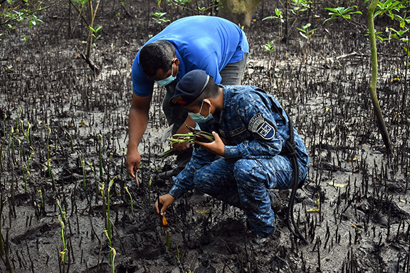 El Ministerio de la Defensa Nacional en función de Autoridad Marítima Nacional a través del Comando Naval del Pacífico con sede en el Apostadero Naval de Sipacate, Escuintla, la Dirección de Asuntos Marítimos del Ministerio de la Defensa Nacional, el Consejo Nacional de Áreas Protegidas y comunitarios de la región, realizan siembra de Mangle Rojo (Rhizophora Mangle), en el Parque Nacional Sipacate Naranjo; en el marco de la conmemoración del “Día Internacional de Conservación del Ecosistema de Manglares”, declarado por la UNESCO y cuyo objetivo es resaltar la importancia de este ecosistema para la humanidad.