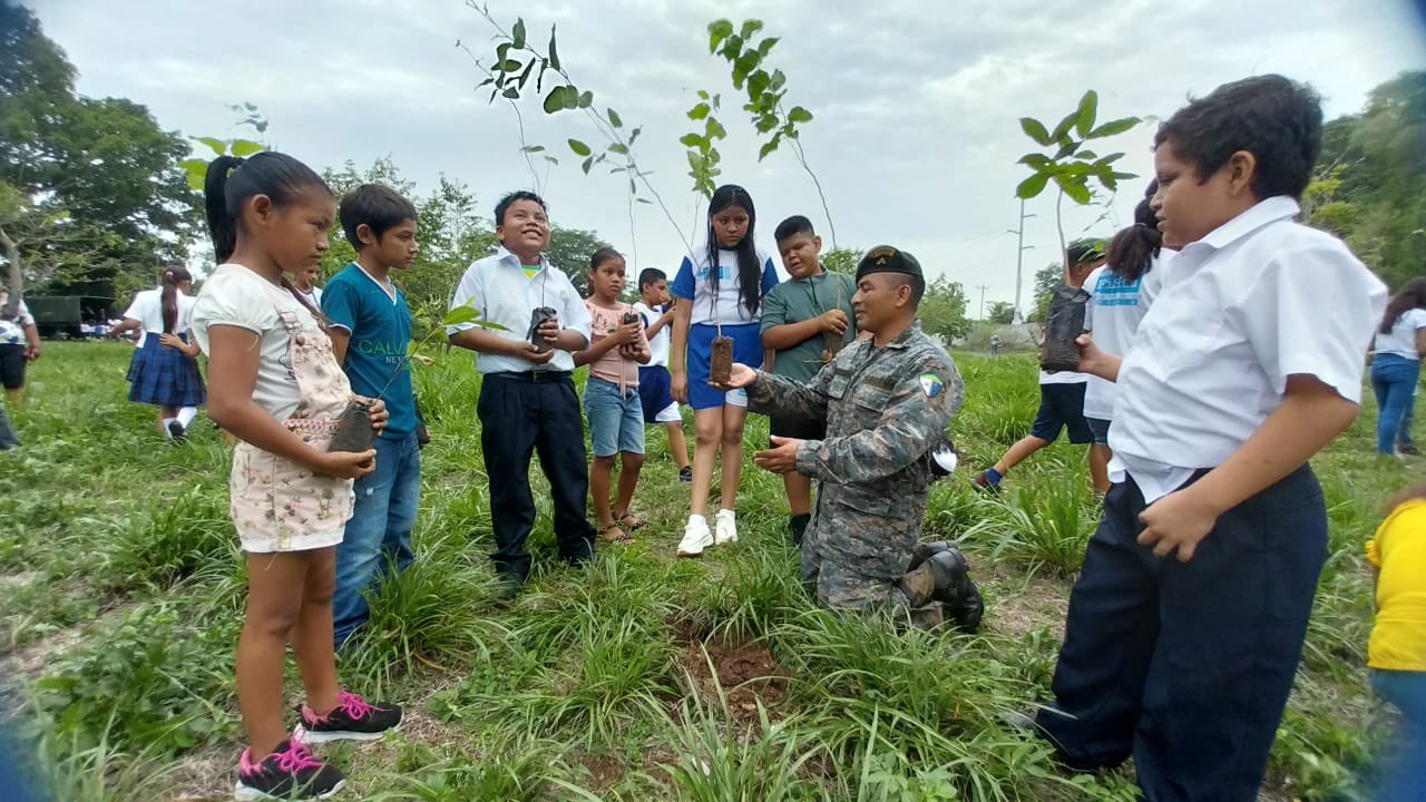 Con la finalidad de contribuir con la mejora del ambiente, el Ejército de Guatemala promueve actividades de reforestación, en las que, unidades militares en coordinación con centros educativos públicos y privados, así como instituciones encargadas del cuidado y protección de los recursos naturales, junto a niños, jóvenes y adultos son concientizados sobre la importancia de la protección del ambiente, los beneficios que proporcionan los bosques limpiando el aire y regulando el clima.