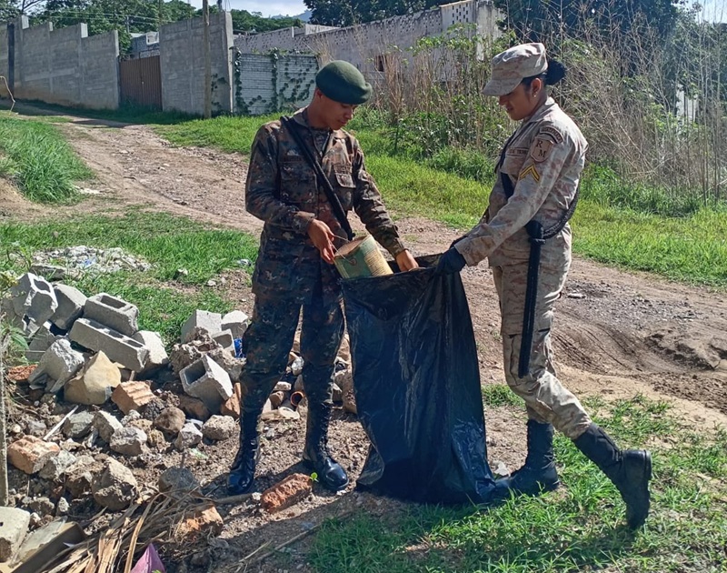 El Ejército de Guatemala a través de la Tercera Brigada de Infantería y Reservistas Militares, en coordinación con el personal del área de salud del departamento de Jutiapa, realizó jornada de limpieza y deschatarrización, en las colonias Villa Hermosa y Buenos Aires de la cabecera departamental, con la finalidad eliminar todos aquellos objetos que podrían convertirse en criaderos de larvas, para evitar la proliferación de los zancudos transmisores del dengue, zika y chikungunya; durante la temporada de lluvias.