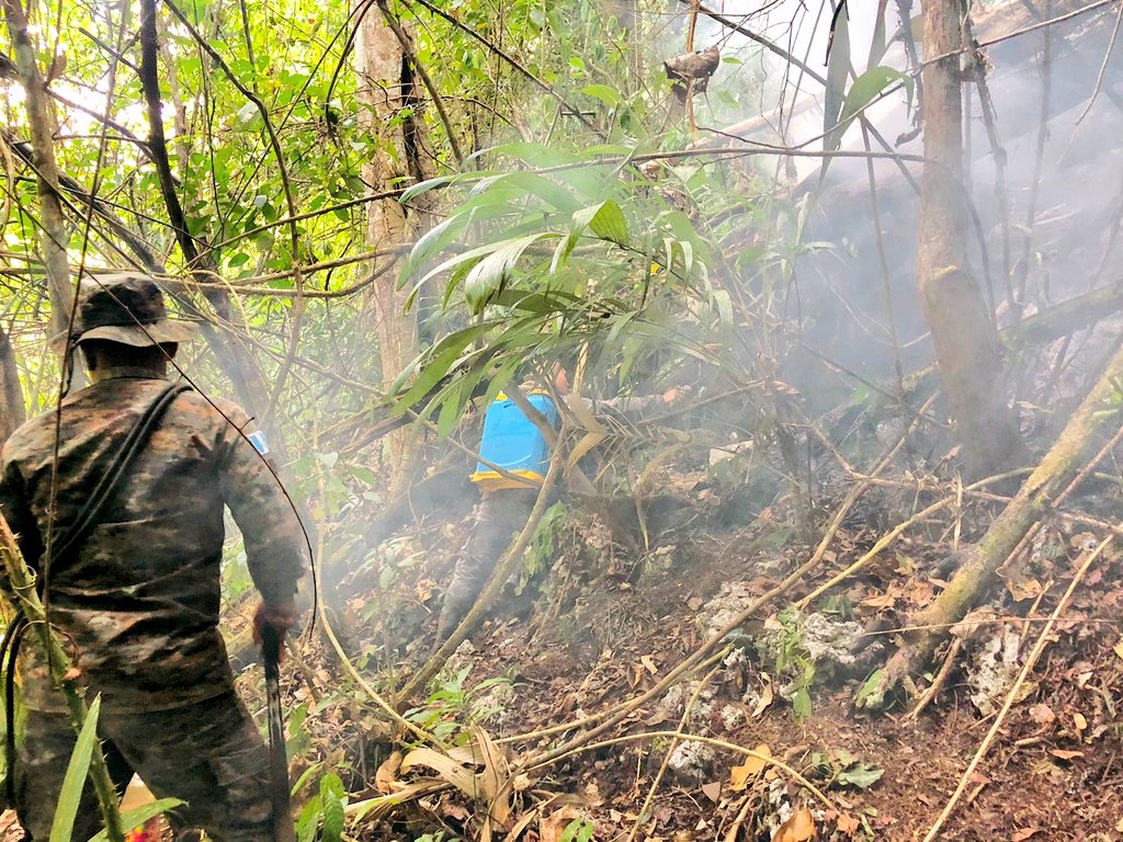 Ejército de Guatemala contribuye en el sofocamiento de incendio forestal registrado en Petén.
