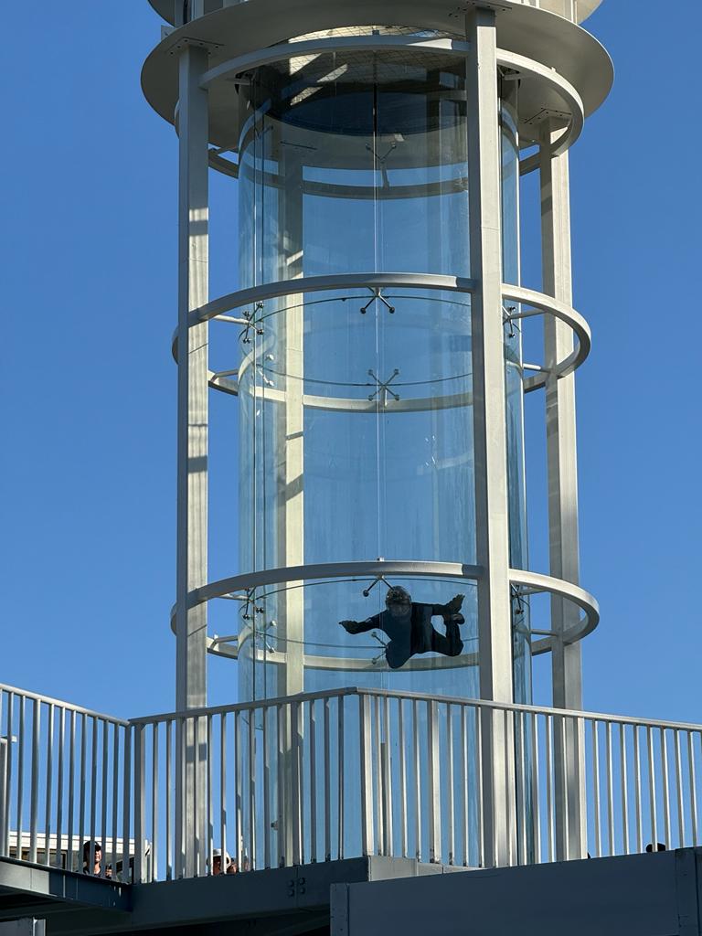 El pasado martes se realizó la demostración de uso del simulador de caída libre, que fue adquirido el año pasado, con el objetivo de proveer a los futuros paracaidistas en entrenamiento de un ambiente seguro, donde podrán practicar diferentes maniobras de caída libre.