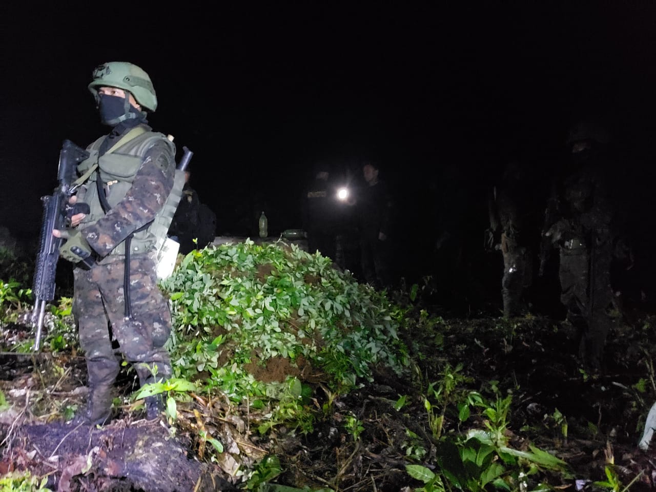 Ejército de Guatemala erradicó 100 mil matas de hoja de coca en Petén.