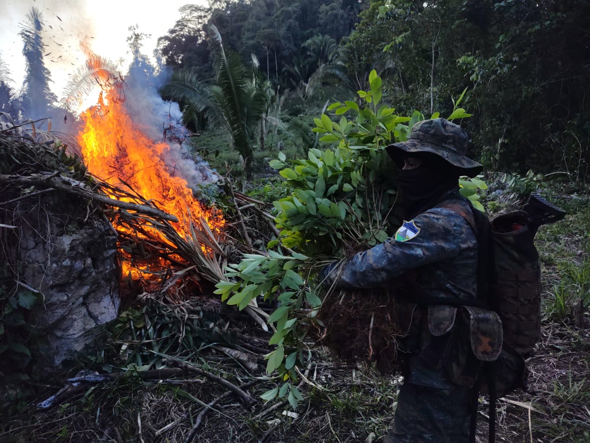 Ejército de Guatemala erradicó 1,001,402 arbustos de hoja de coca en Petén.