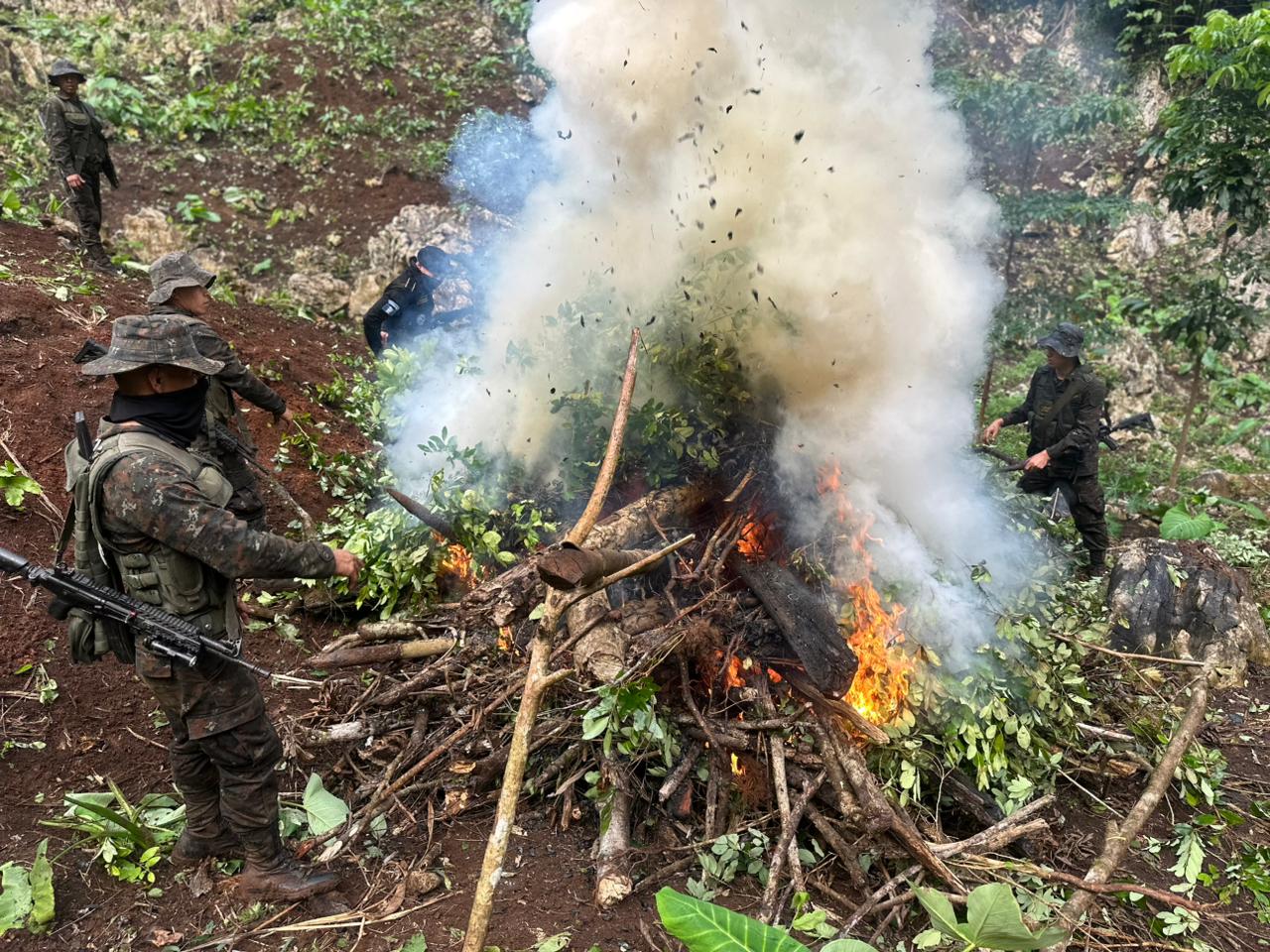 El Ejército de Guatemala reafirma su compromiso de apoyar los esfuerzos nacionales en la lucha contra el crimen organizado, logrando erradicar más de 2 millones de matas de arbustos de hoja de coca en lo que va del presente año.