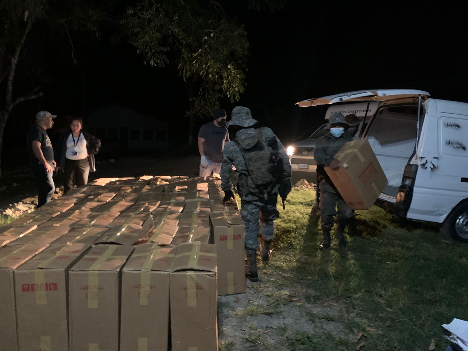 El Ejército de Guatemala, a través de la Primera Brigada de Infantería "General Luis García León", durante patrullajes de seguridad en el municipio de Melchor de Mencos, Petén, interceptaron en la madrugada de este martes 30 de noviembre, dos microbuses y un vehículo tipo sedán, que al ser inspeccionados, se detectó que transportaban posibles ilícitos, por lo que se informó inmediatamente a las autoridades jurisdiccionales, quienes realizaron la judicialización del hallazgo.