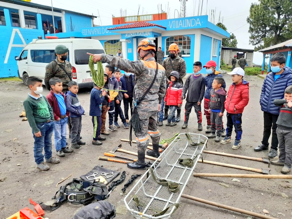 Como parte de estas acciones, elementos de la Brigada de Operaciones para Montaña y del Batallón Humanitario y de Rescate, en coordinación con la Policía Nacional Civil y la Procuraduría General de la Nación, impartieron pláticas motivacionales promoviendo la cultura de paz, así como primeros auxilios a estudiantes de las Escuelas Oficiales Rurales “Caserío Villa Linda” y “Caserío Villa Real”, del municipio de Tajumulco, en donde además realizaron diversas actividades lúdicas que permitieron a los niños compartir momentos de alegría y entretenimiento.