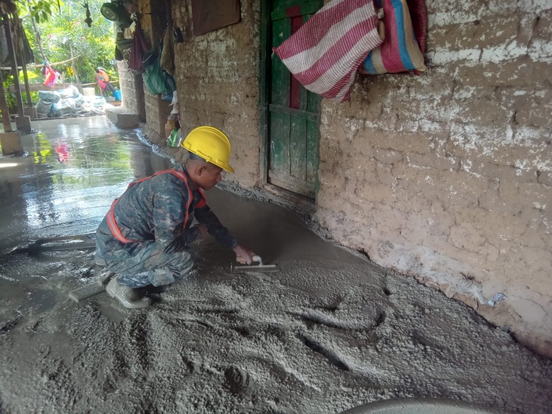 Ejército de Guatemala realiza la fundición de contrapiso en más de 1,600 viviendas en Huehuetenango.
