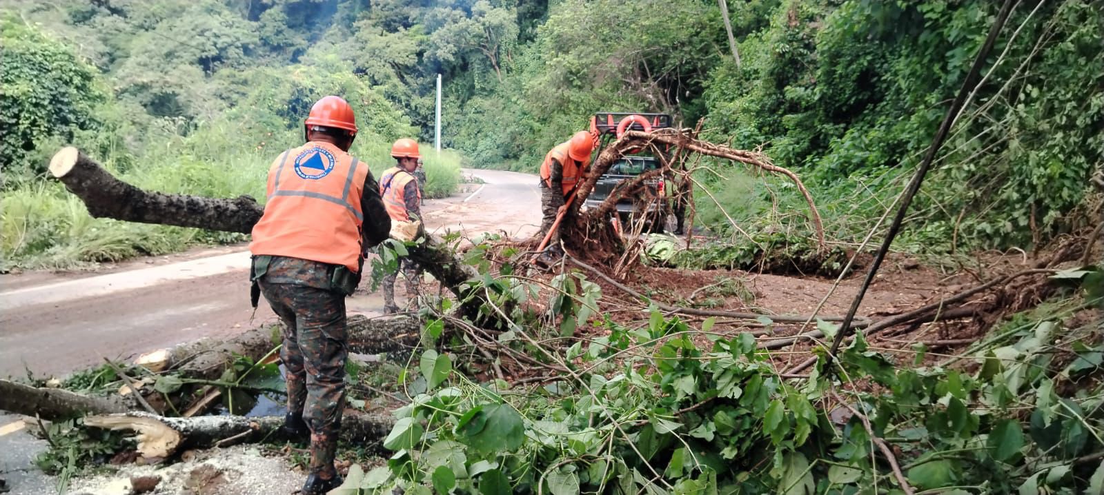 Ante los efectos de las lluvias que en los últimos días han afectado el territorio nacional, la Tercera Brigada de Infantería "General Manuel Maximiliano Aguilar Santamaría" realizó trabajos de limpieza y descombramiento en la Ruta Nacional 16 (RN-16), que conduce al municipio de Chiquimulilla, Santa Rosa, donde un árbol caído obstruía el paso vehicular.