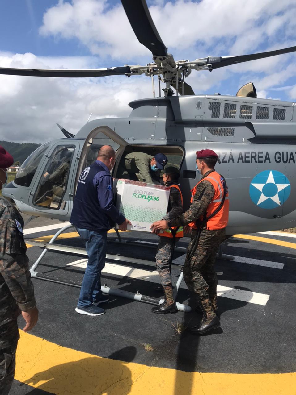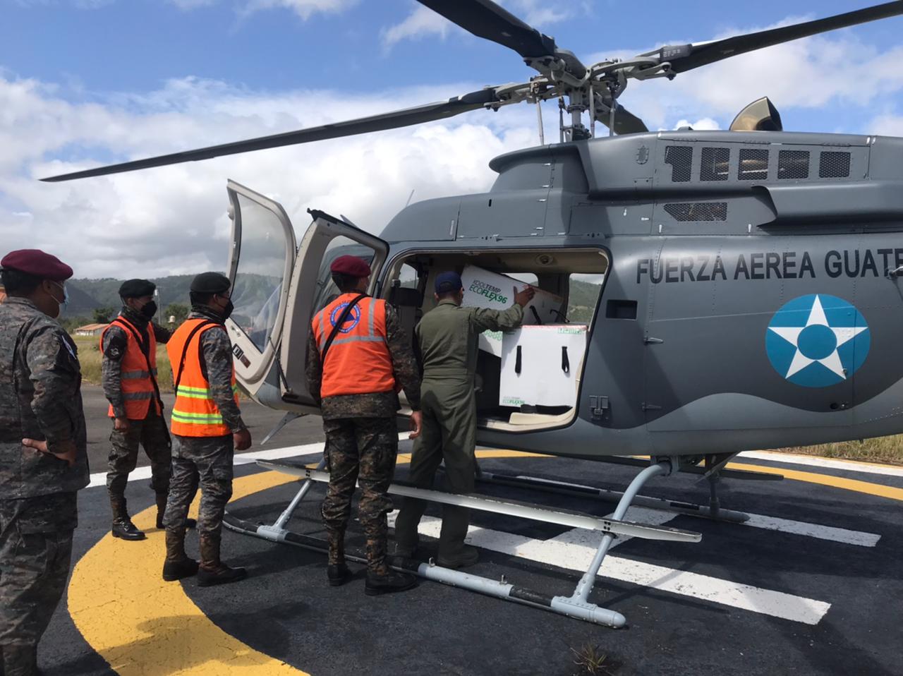 El Ejército de Guatemala continúa realizando operaciones aéreas que facilitan el traslado de la vacuna contra el Coronavirus, COVID-19, hacia y dentro del interior de la República, como parte de las acciones que coadyuvan con la importante tarea de hacer llegar este vital insumo a las comunidades más lejanas de la República.