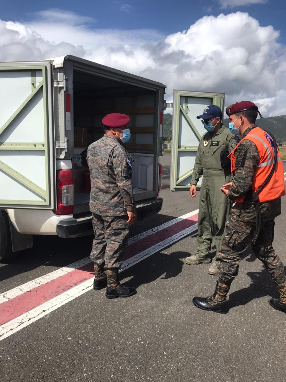 Ejército de Guatemala realizó el traslado de 19 mil dosis de vacunas contra Coronavirus, COVID-19 a los municipios de Nentón y Tectitán