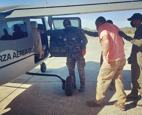 El señor López, fue trasladado junto a un familiar hacia la Fuerza Aérea Guatemalteca, desde donde posteriormente fue llevado al Centro Médico Militar, en donde se proporciona atención especializada.