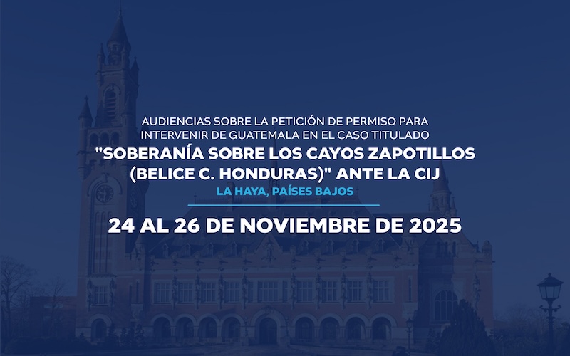 Guatemala, 24 de noviembre de 2025. Hoy se iniciaron las audiencias públicas ante la Corte Internacional de Justicia (CIJ) en su sede en La Haya, Países Bajos, para considerar la petición de permiso para intervenir de la República de Guatemala en el caso titulado “Soberanía sobre los Cayos Zapotillos (Belice c. Honduras)”.